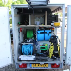 Ons team heeft de buitenkant van het pand, inclusief de gevels en ramen, behandeld met onze milieuvriendelijke Softwash-methode. Deze methode maakt gebruik van lage druk en biologisch afbreekbare reinigingsmiddelen om hardnekkig vuil, algen en schimmels te verwijderen zonder schade aan de oppervlakken.