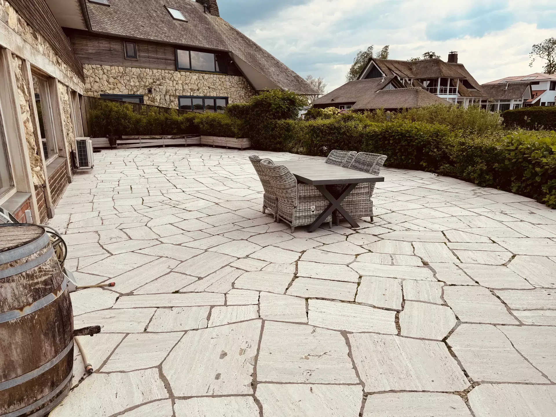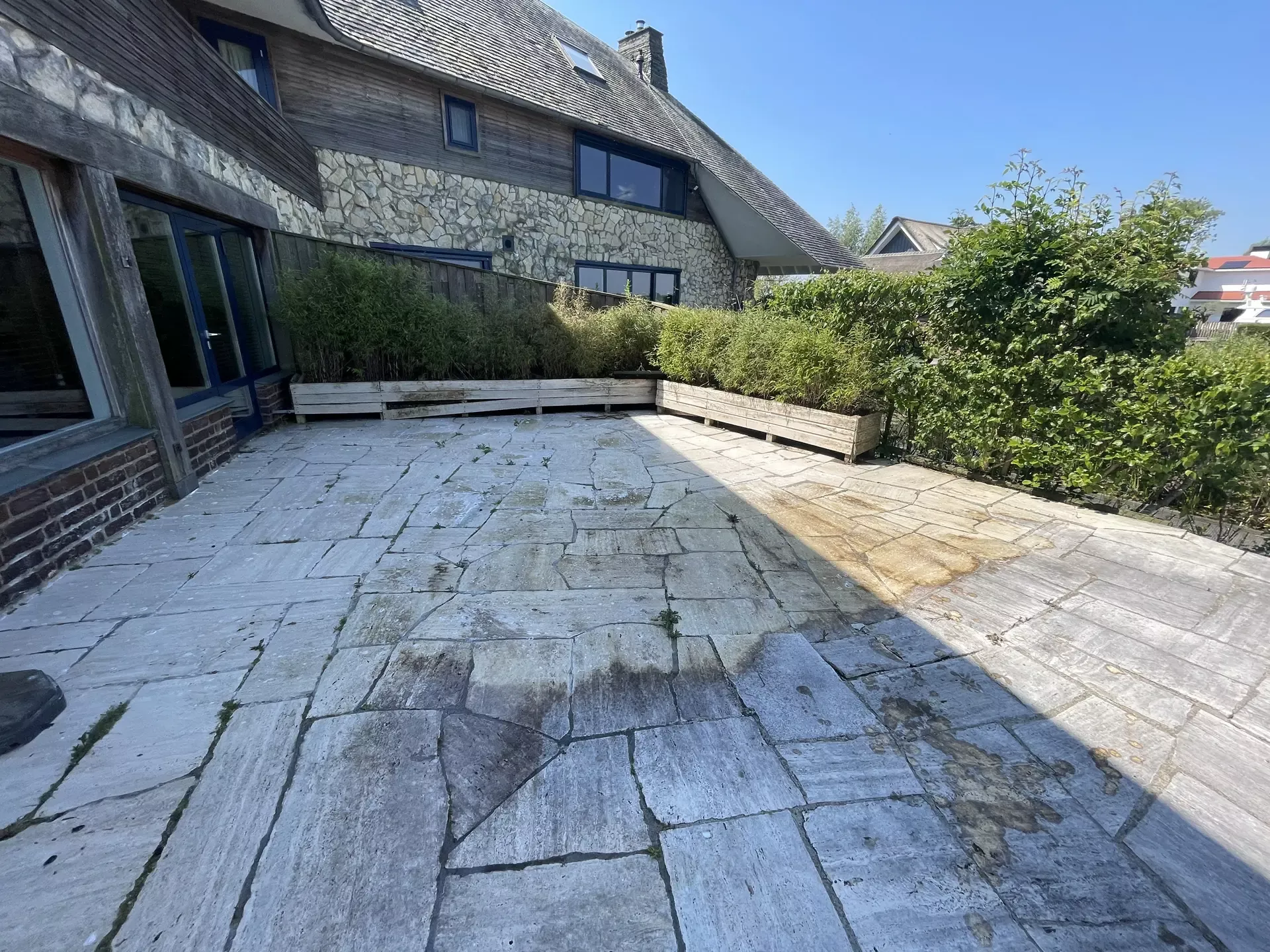 Bij 123 Softwash zijn we op een ander succesvol project gesprongen waarbij we een terras hebben gereinigd voor een prachtige villa in Noord-Holland. De eigenaren willen hun terras klaar maken voor een groot familie-evenement en vragen ons om het schoon en uitnodigend te maken